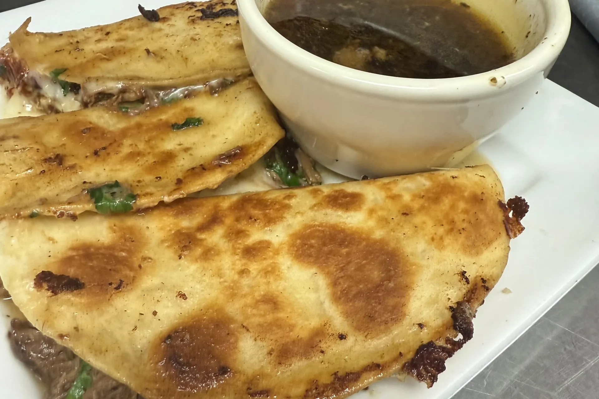 Crispy tortillas grilled and stuffed with mozzarella cheese, roasted chicken, jalapeno lime sauce and served with guacamole.