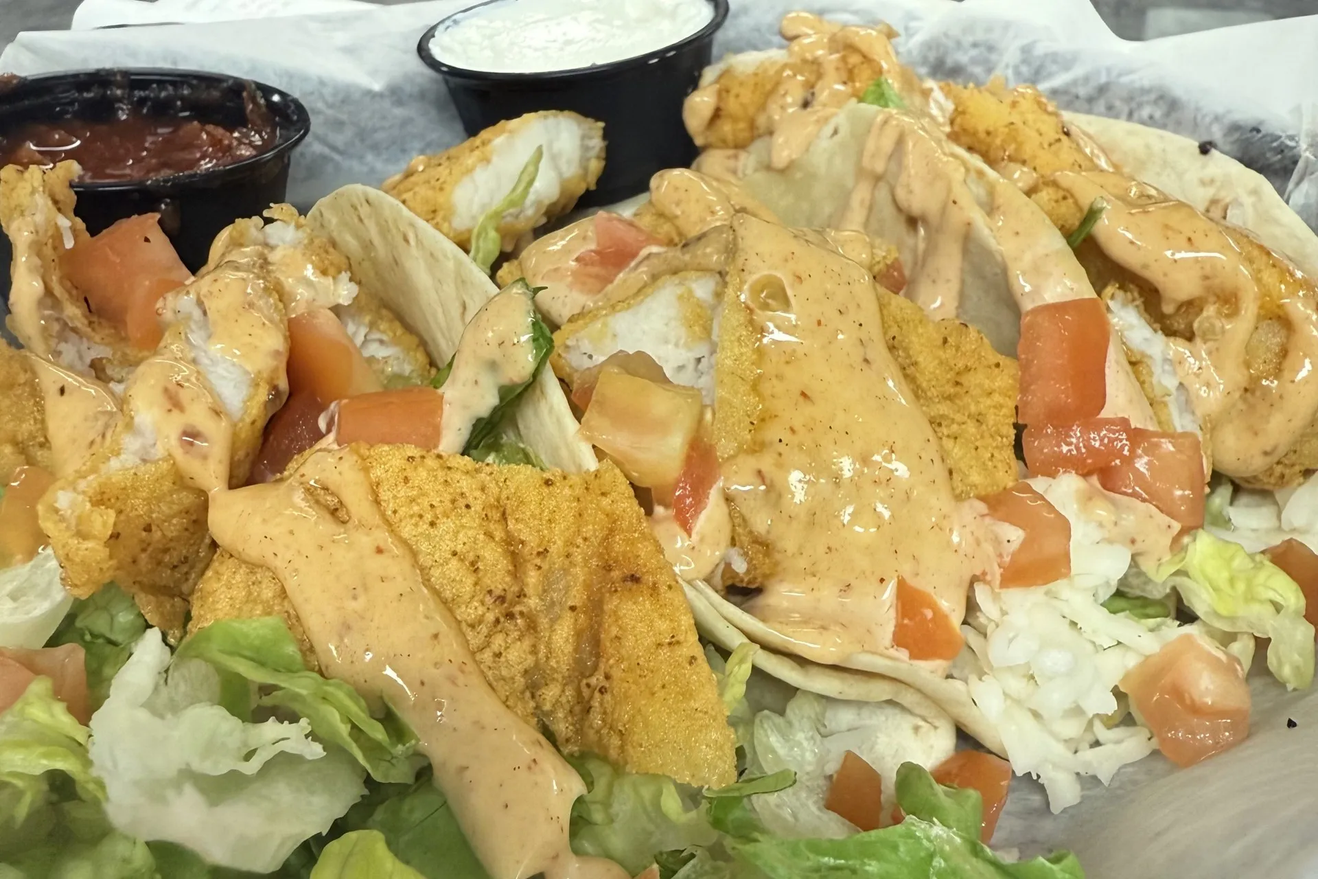 All tacos served on flour tortillas. Corn tortillas available for gluten free option.