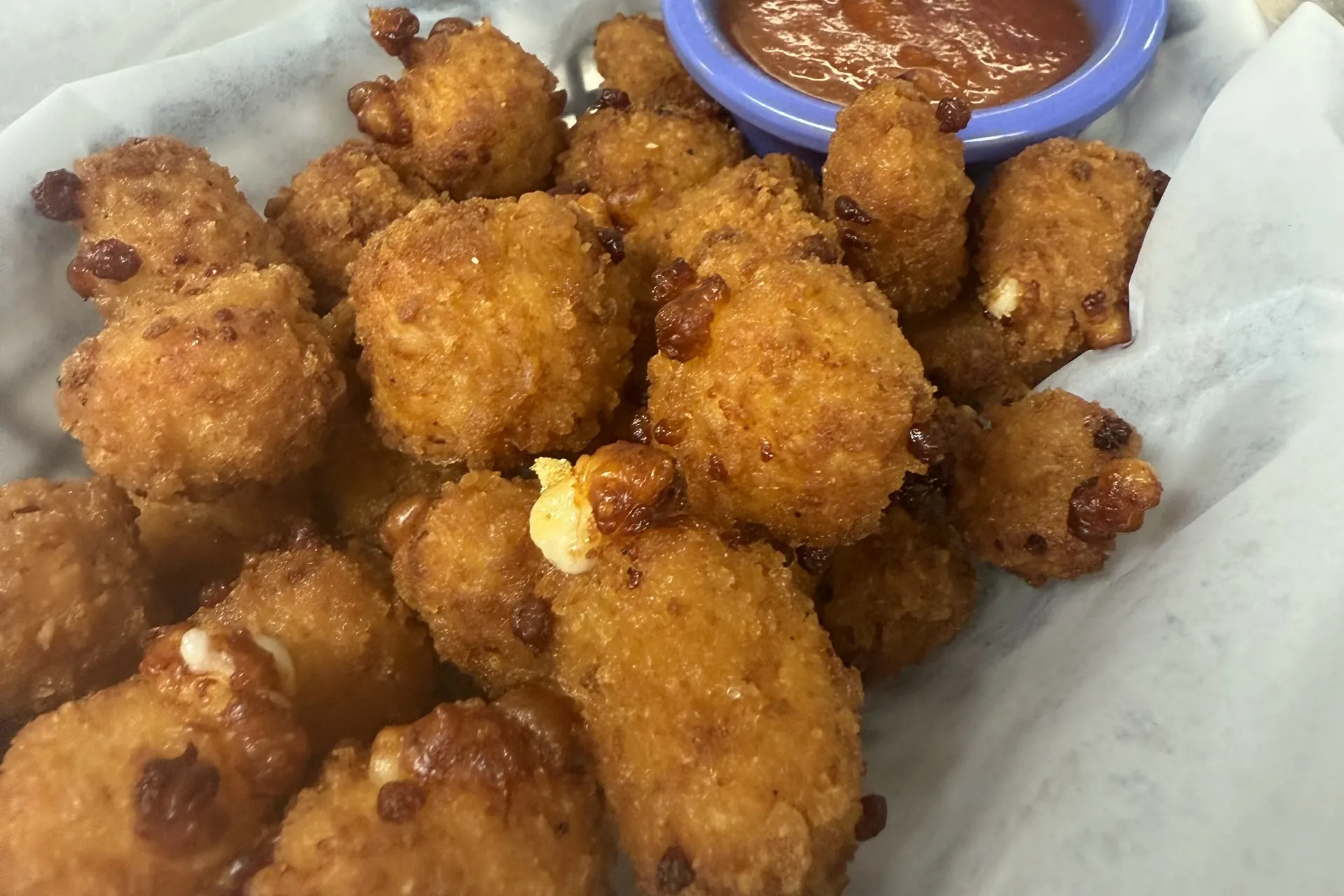 MEDIUM MARY – Vodka, Major Peters’ bloody Mary mix with our secret ingredients garnished with a celery salt rim, celery, olives, lime, lemon, cheese cubes, a beef stick, a chicken wing and one of our hand rolled mozzarella sticks!